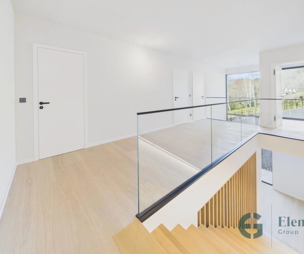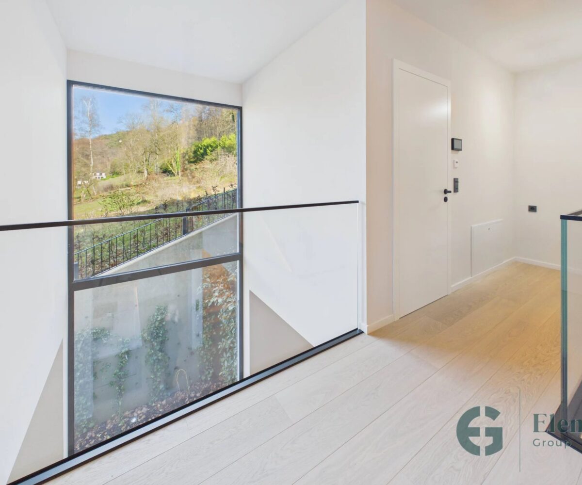 Au cœur d’un environnement verdoyant privilégié à Kopstal, dans une rue en impasse particulièrement calme et paisible, au bord d’une petite rivière, se découvre ce superbe appartement duplex aux prestations haut de gamme. Développant 234,28 m² habitables nets, ce bien rare séduit par ses volumes généreux et son atmosphère lumineuse. Les grandes baies vitrées invitent la nature à l’intérieur et offrent une lumière naturelle abondante tout au long de la journée, créant une harmonie parfaite entre intérieur et extérieur. L’espace de vie principal allie confort et raffinement, avec une cuisine ouverte entièrement équipée d’appareils électroménagers premium des marques Miele et Bora, conjuguant design contemporain et technologie de pointe. Les finitions soignées, notamment le parquet de haute qualité, soulignent le caractère élégant et intemporel du bien. L’un des éléments architecturaux les plus remarquables est la mezzanine avec ouverture sur deux étages, offrant une impression spectaculaire de volume et de perspective. Cet espace unique apporte cachet et exclusivité à l’ensemble, tout en renforçant la sensation d’espace et de luminosité. L’appartement dispose également d’un ascenseur, garantissant un confort optimal et une accessibilité facilitée au quotidien. À l’extérieur, deux terrasses de 120,45 m² prolonge naturellement les espaces de vie et permet de profiter pleinement du cadre naturel environnant, dans un calme absolu. Ce duplex s’adresse à une clientèle recherchant un bien alliant standing, nature et intimité, tout en restant à proximité de Luxembourg-Ville et des commodités essentielles. Un lieu de vie rare, où luxe discret et qualité de vie s’unissent harmonieusement.